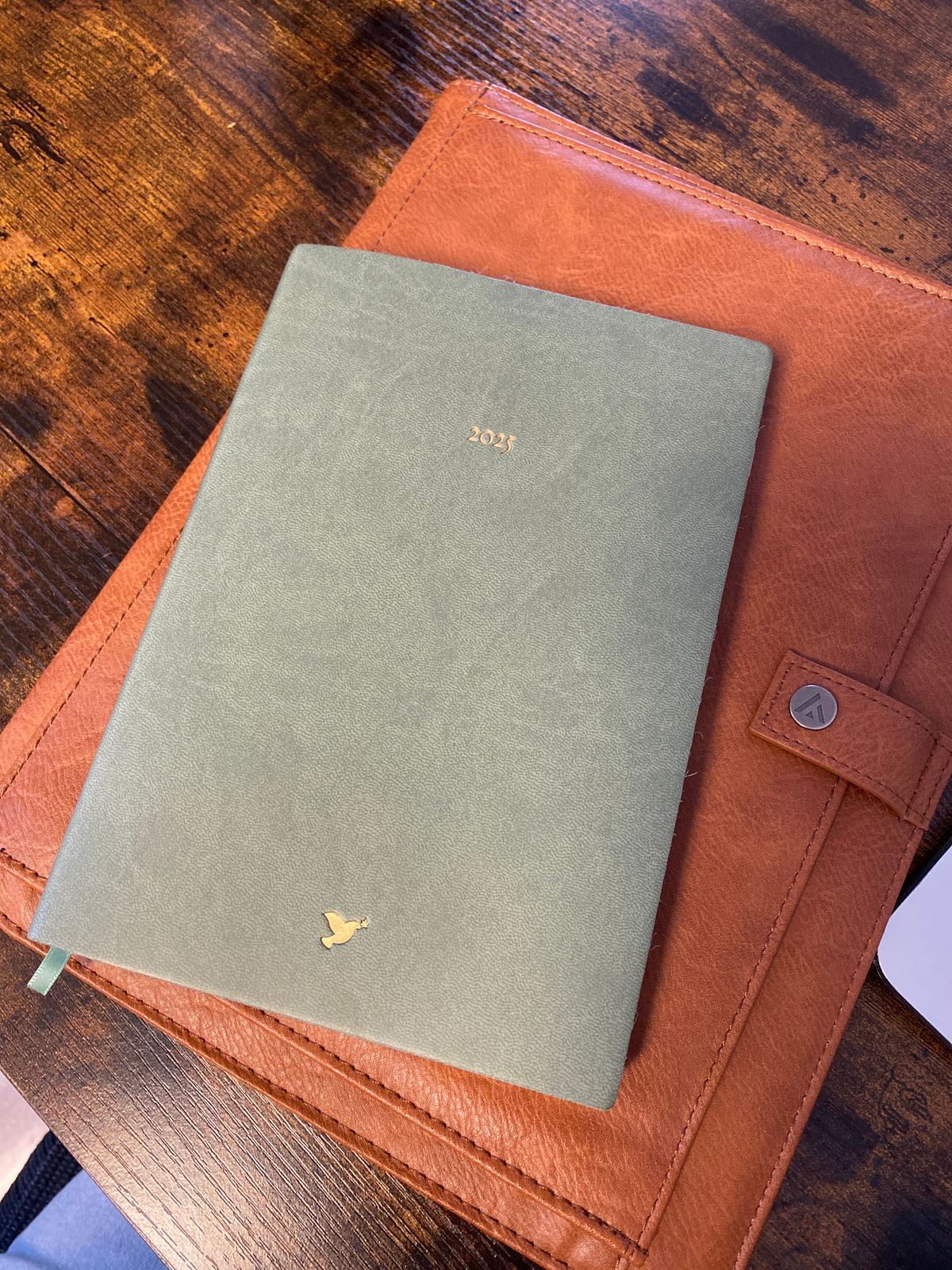 All of our planners have a soft PU vegan leather cover with gold embossed logos.